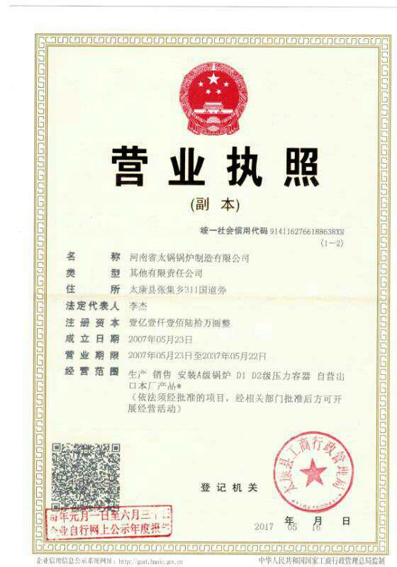 河南省太鍋鍋爐制造有限公司(原河南省太康鍋爐廠始建于1976年)始建于70年代初,經(jīng)40多年的艱辛探索,靠科技興業(yè),走科學(xué)管理之路,現(xiàn)已發(fā)展成為承接制造、安裝、設(shè)計(jì)大、中型供熱系統(tǒng),生產(chǎn):SZS燃油燃?xì)庹羝仩t、燃煤蒸汽鍋爐、燃油鍋爐、燃?xì)忮仩t、電加熱鍋爐、生物質(zhì)鍋爐、茶水鍋爐、有機(jī)熱載體鍋爐、熱風(fēng)鍋爐,蒸壓釜、燃油蒸汽鍋爐、燃?xì)庹羝仩t、燃油熱水鍋爐、燃?xì)鉄崴仩t并承擔(dān)安裝120噸熱水鍋爐、蒸汽鍋爐,生物質(zhì)鍋爐,加工制造一、二類蒸壓釜、壓力容器,化工機(jī)械的省一級**企業(yè)。